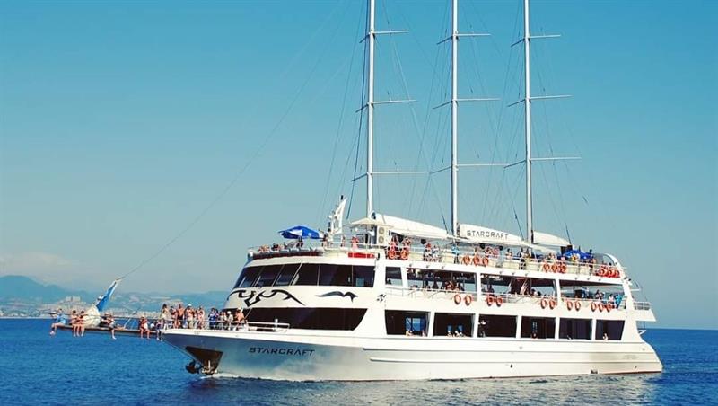 Alanya starcraft tekne turu 800 kişi kapasiteli, Alanya'nın en büyük ve lüks teknesi olan altı katlı Starcraft ile Alanya'nın en güzel sahil ve koylarını keşfedebileceğiniz, güneşlenip, yüzünüzün eğleneceği dolu bir enerjik bir deneyim sunuyor. Büyük bir kuğuyu andıran beyaz rengi ve harika bir modern görünüme sahip Starcraft teknesi Alanya'da bir çok örnek olan ahşap korsan teknelerinden farklı olarak fiberglastan yapılmış olup,Alanya iskelesinde bulunan tek örnektir.